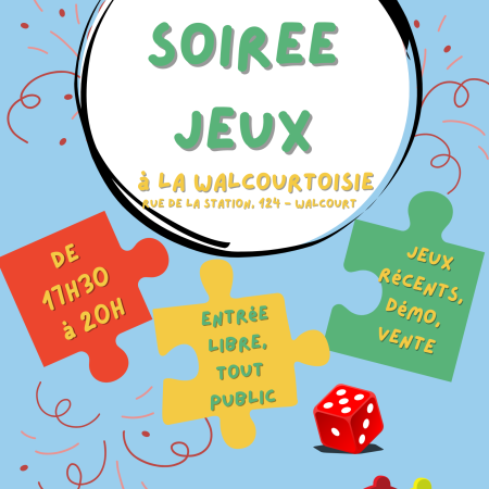 Je travaille à la création d'un projet de ludothèque proposant du prêt de jeux et de l'animation et se déplaçant dans les villages de l'entité de Walcourt. En attendant, je propose des animations jeux de société et jeux géants.