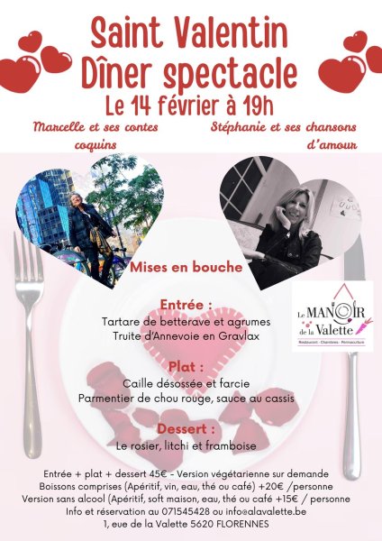 souper St Valentin avec la présence de deux artistes, une chanteuse et une conteuse