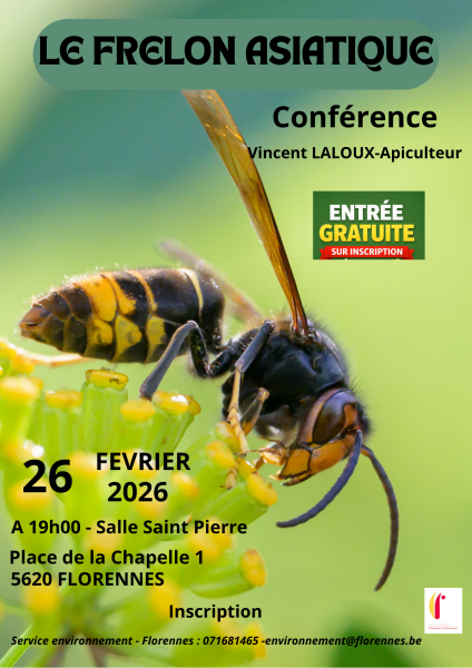 Le Service environnement de la commune de Florennes organise une conférence sur "Le frelon asiatique, le connaître pour mieux le gérer ensemble".